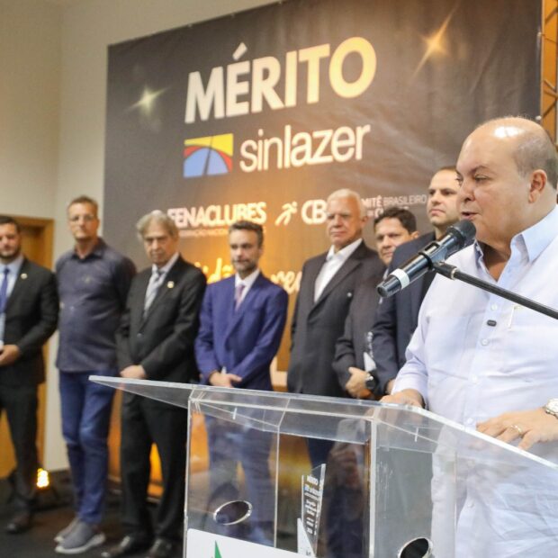 O governador Ibaneis Rocha foi premiado na primeira edição do Prêmio Mérito Sinlazer-DF, realizada na Associação Médica de Brasília. A premiação, promovida pelo Sindicato de Clubes e Entidades de Classe Promotoras de Lazer e Esporte do Distrito Federal (Sinlazer-DF), reconhece o apoio do governo ao fortalecimento do setor de lazer e esporte na capital.