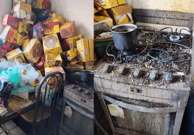 Entre a bagunça, os policiais encontraram muitas caixas de panetone, que era o único alimento que a idosa dizia comer todos os dias, mostrando como ela foi negligenciada por mais de dez anos.