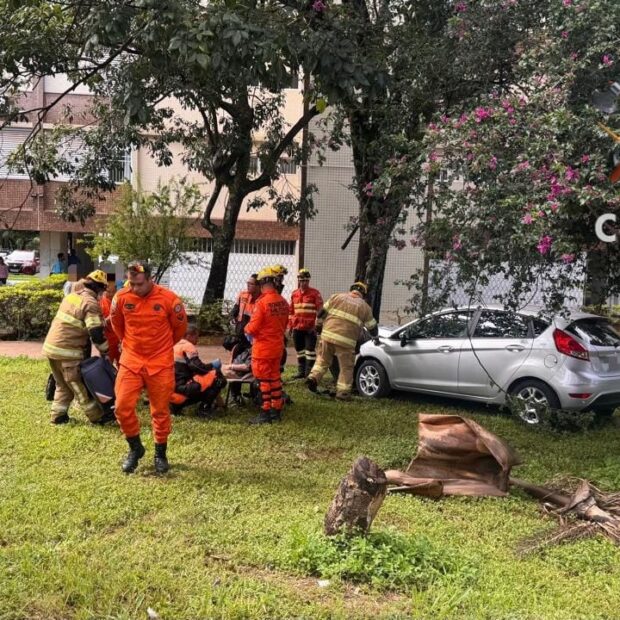 Quatro viaturas do Corpo de Bombeiros Militar do Distrito Federal foram acionadas para atender a ocorrência. No local, encontraram um Ford Fiesta prata que havia batido na árvore.
