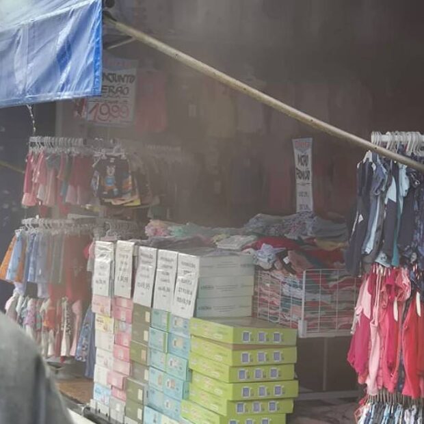 O incêndio começou por volta das 11h10, conforme informado pelo Corpo de Bombeiros. A loja está na rua Maria Marcolina, uma das mais cheias de movimento do bairro.