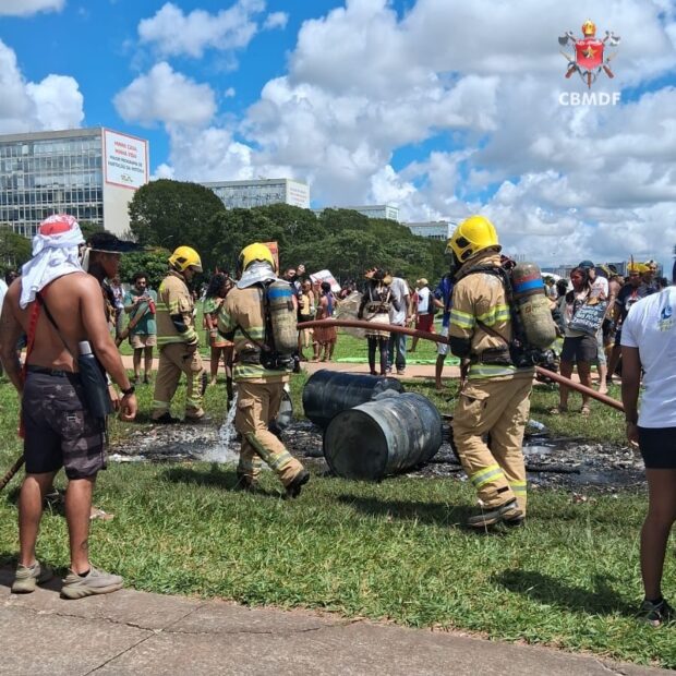 Na manhã de terça-feira, 7 de abril de 2026, um protesto na Esplanada dos Ministérios exigiu a intervenção do Corpo de Bombeiros Militar do Distrito Federal. Por volta das 11h17, manifestantes atearam fogo em materiais jogados na pista, causando muita fumaça.