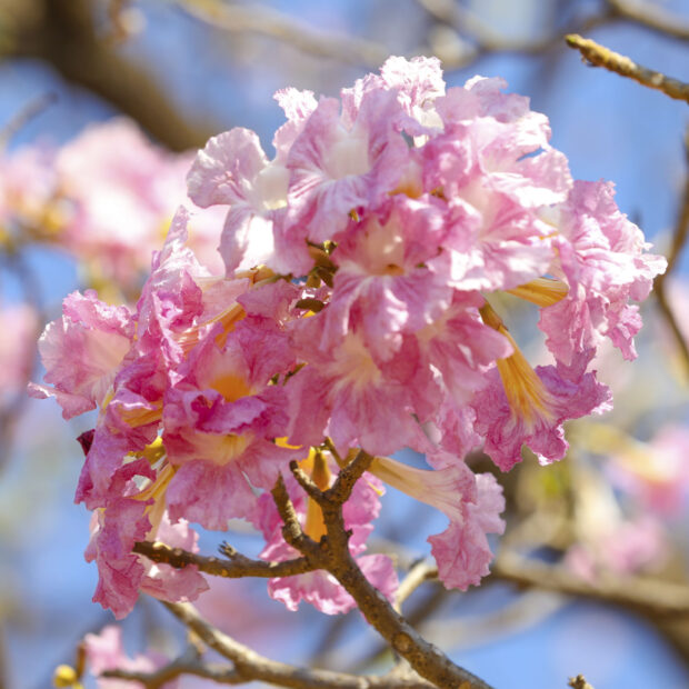 Essa árvore, cientificamente chamada Tabebuia avellanedae ou Handroanthus avellanedae, pode crescer entre 20 e 35 metros de altura, com troncos retos que medem de 60 a 80 centímetros de diâmetro. As flores variam do rosa ao roxo, mas são distintas das dos ipês roxos, que desabrocham primeiro na cidade.