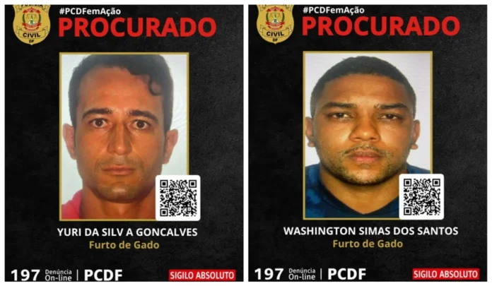 Dois homens são procurados pela Polícia Civil do Distrito Federal (PCDF) suspeitos de furtar gado na área do Gama. Os suspeitos, identificados como Yuri da Silva Gonçalves e Washington Simas dos Santos, foram o foco de uma operação realizada na segunda-feira (10/11).