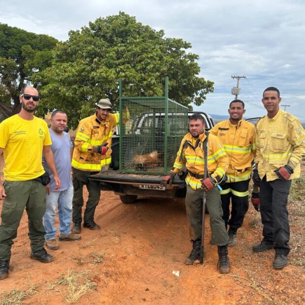 Os brigadistas estavam preparados com equipamentos para a contenção segura de animais como o lobo-guará, incluindo gaiolas, cordas, cambão e equipamentos de proteção individual.