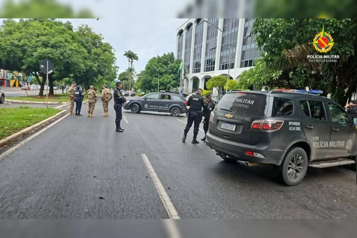 O objeto foi deixado em frente ao edifício e os vigilantes prontamente acionaram a Polícia Militar do Distrito Federal (PMDF) por receio de que pudesse conter uma bomba.