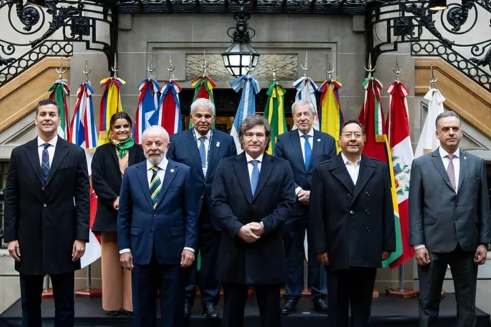 Os líderes da Argentina, Javier Milei, do Paraguai, Santiago Peña, e do Panamá, José Raúl Mulino, juntamente com representantes da Bolívia, Equador e Peru, reafirmaram o compromisso com a democracia e expressaram séria preocupação diante da grave crise migratória, humanitária e social enfrentada pela Venezuela.