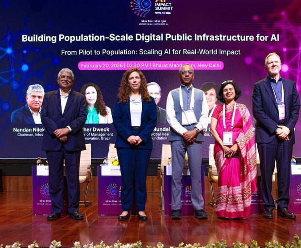 Esther Dweck, ministra da Gestão e da Inovação em Serviços Públicos, participou do painel sobre a criação de infraestrutura pública digital em escala para inteligência artificial no AI Summit na Índia. O evento contou com a presença de líderes globais, como Irina Ghose, diretora-geral da Anthropic Índia; Nandan Nilekani, cofundador da Infosys; e Trevor Mundel, presidente de Saúde Global da Gates Foundation, moderado por Shankar Maruwada, cofundador e CEO da EkStep Foundation.
