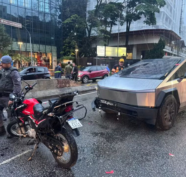 O carro envolvido é o Tesla Cybertruck, um modelo elétrico conhecido pelo seu design futurista e linhas retas. No Brasil, as versões vendidas custam entre R$ 1,7 milhão e R$ 2 milhões.