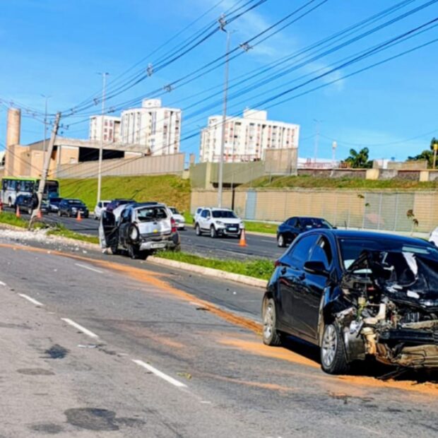 No local, os bombeiros encontraram uma batida entre três veículos: um Hyundai HB20 preto, uma motocicleta Yamaha prata e um Fiat Idea Adventure prata, que, após o impacto, colidiu com um poste.