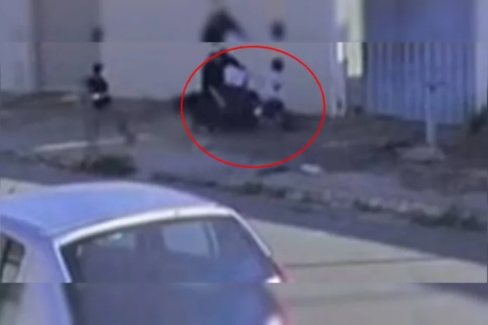 Uma criança de 10 anos esteve muito próxima da morte após ser atropelada por um motociclista que realizava a manobra arriscada conhecida popularmente como “grau”. Todo o incidente foi capturado por câmeras de segurança de uma residência.