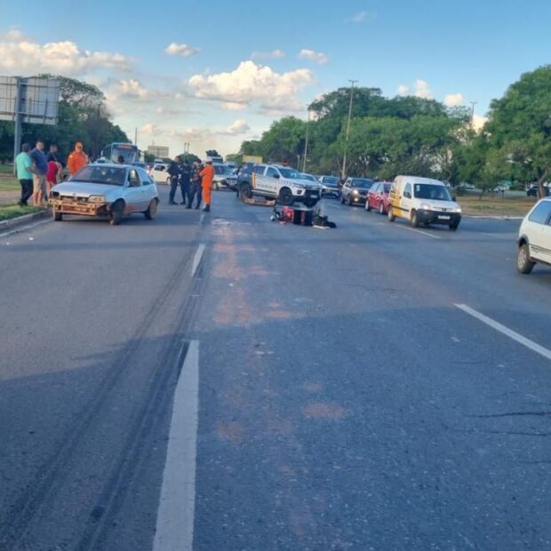 Depois de garantir a segurança do local, o condutor da moto foi socorrido no local consciente e orientado, apresentando ferimentos na perna esquerda, sendo levado ao hospital. O motorista do automóvel não necessitou de atendimento hospitalar.