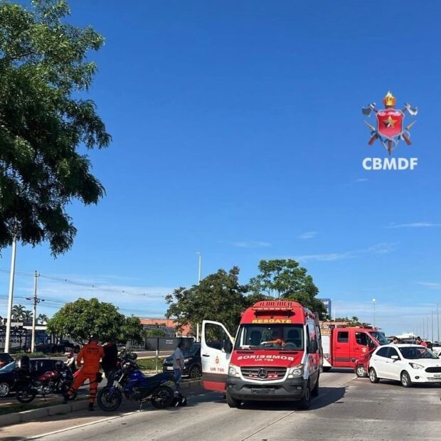 O motociclista recebeu atendimento ainda na rua. Conforme o CBMDF, ele estava consciente, orientado e com ferimentos leves. Foi levado ao hospital de referência para cuidados. O condutor do carro passou por avaliação no local, mas não precisou ser levado ao hospital.