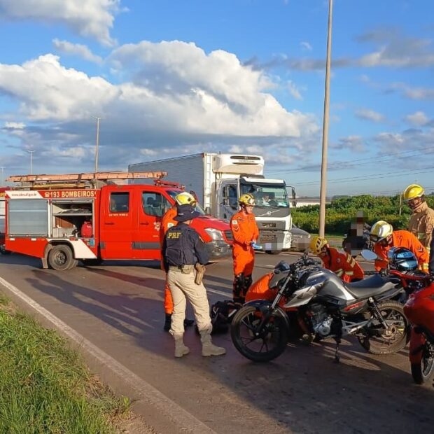 Ao chegar ao local, os bombeiros encontraram o motociclista caído na pista e rapidamente tomaram medidas para garantir a segurança do local, sinalizando a área e controlando os riscos. Em seguida, prestaram atendimento inicial à vítima.