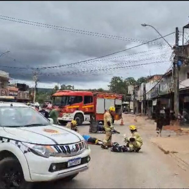 O acidente aconteceu na Avenida Central, número 171, na área da Vila Nova. Ao chegarem, os bombeiros encontraram uma colisão entre um Volkswagen Voyage cinza e uma motocicleta Honda CG preta.