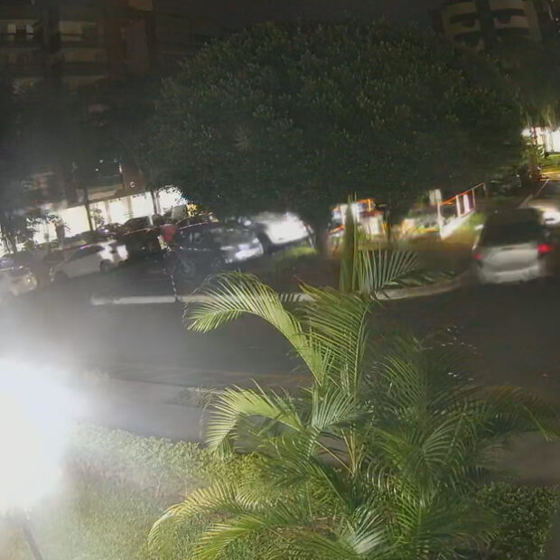 Câmeras de segurança de prédios próximos filmaram o acidente.