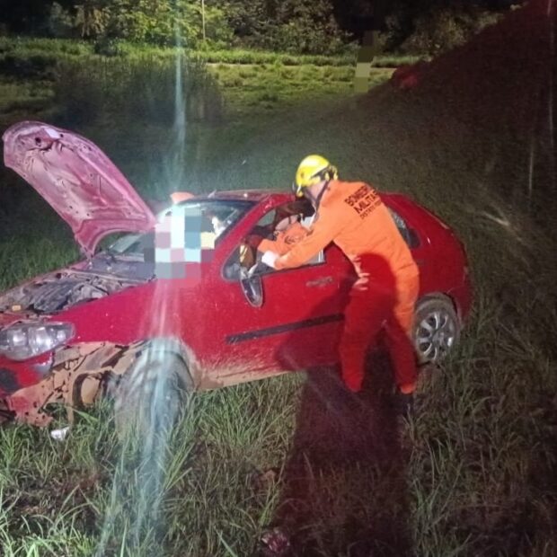 Ao chegar no local, os bombeiros encontraram um Fiat Palio vermelho que capotou depois de bater no guard rail. Após sinalizar a via e garantir a segurança do local, eles começaram a prestar socorro ao motorista.