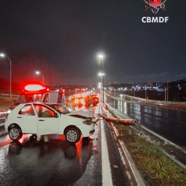 O Corpo de Bombeiros do Distrito Federal foi chamado às 00h02 desta terça-feira (14/10/2025) para atender um acidente onde um veículo colidiu com um poste na saída do Lago Norte, em direção à Granja do Torto. Duas viaturas de resgate foram mobilizadas para a ocorrência.