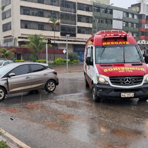 De acordo com os socorristas, a colisão foi lateral e envolveu veículos de passeio. Uma passageira de um dos carros sentiu dores nos braços, pernas e nas costas.