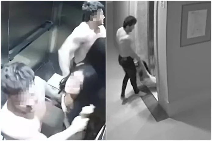 As imagens capturadas pelas câmeras de segurança mostram detalhes do incidente: a vítima sendo puxada pelo elevador, atravessando o corredor e sendo levada para dentro do apartamento em um condomínio de alto padrão.