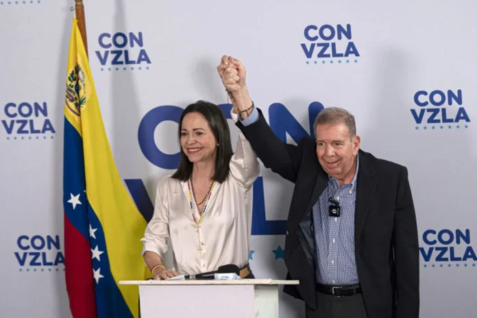 Edmundo González concorreu nas eleições venezuelanas de 2024 contra Nicolás Maduro, questionando os resultados e alegando manipulação eleitoral para assegurar a reeleição do atual presidente. Enquanto isso, María Corina Machado foi impedida de disputar tais eleições e permanece em local oculto devido às perseguições do governo vigente.