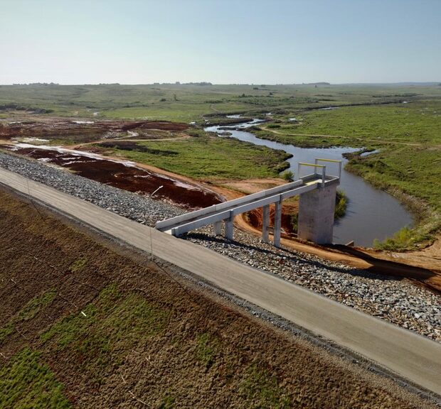 Depois da inauguração em São Gabriel, a equipe visitou a obra da Barragem de Arvorezinha em Bagé, que está em andamento e vai armazenar 18 milhões de metros cúbicos de água para garantir água potável para cerca de 120 mil moradores.