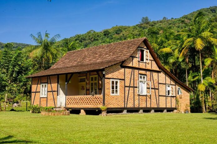 A técnica construtiva do enxaimel, originária da Alemanha, é caracterizada por uma estrutura de madeira aparente, formando um padrão de treliça que é preenchido com tijolo, cimento, pedra ou barro. Essa técnica foi trazida para o Brasil pelos colonizadores alemães que se estabeleceram na região Sul do país.