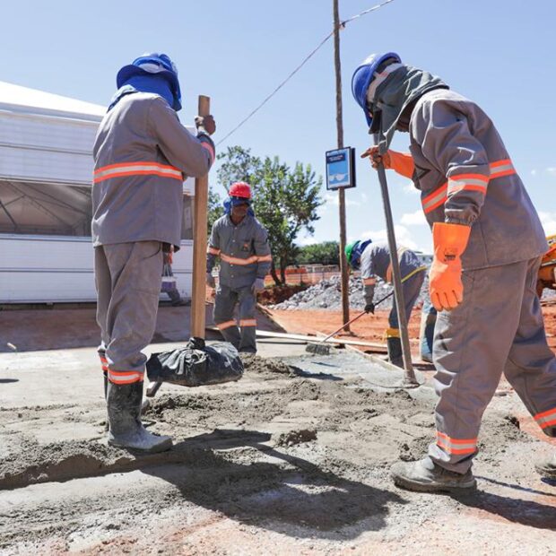 Hoje, trabalham no local 66 pessoas, número que pode chegar a 350 nos períodos de maior atividade, incluindo trabalhadores diretos e indiretos. A fundação do prédio foi feita com 508 estacas que atingem até 22 metros de profundidade, garantindo a estabilidade da construção. Em breve, será iniciada a fase de construção das paredes e depois a instalação das redes elétrica e hidráulica.
