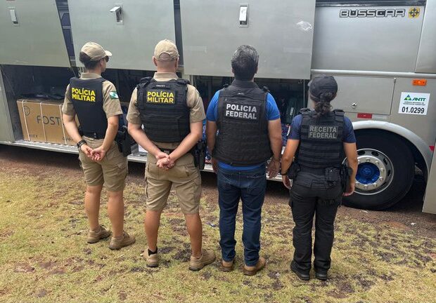 Uma operação conjunta entre a Polícia Federal e a Receita Federal do Brasil apreendeu dois ônibus carregados com grande quantidade de mercadorias ilegais no oeste do Paraná, na terça-feira (27).