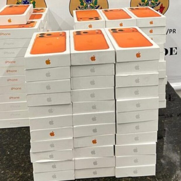 Um homem foi detido no Aeroporto Internacional de Foz do Iguaçu, Paraná, ao tentar embarcar com cerca de 100 celulares sem nota fiscal.