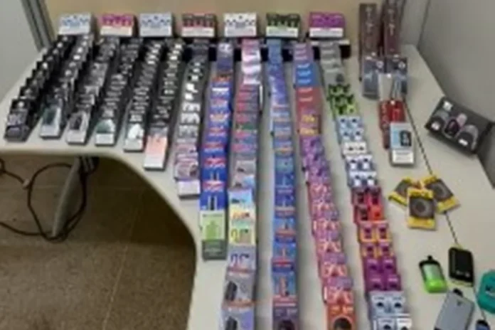 - Aproximadamente 200 cigarros eletrônicos e acessórios relacionados foram apreendidos;