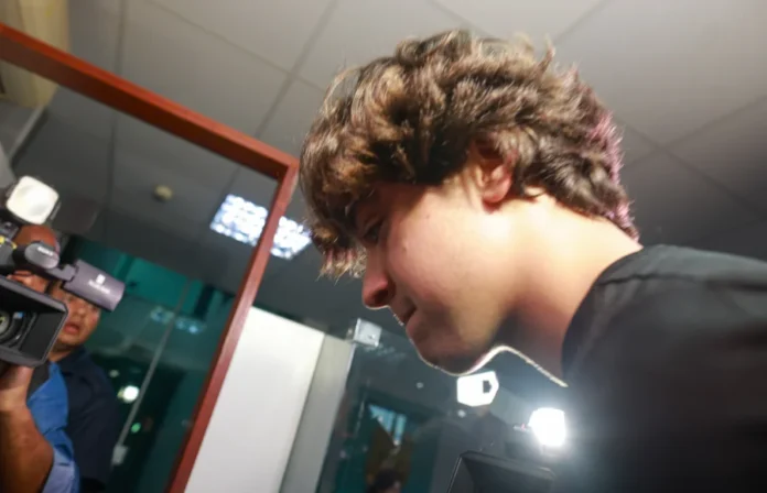 O piloto Pedro Arthur Turra Basso, de 19 anos, está detido acusado de agredir um jovem de 16 anos em 22 de janeiro. Uma foto oficial dele foi registrada no momento de sua chegada ao sistema prisional.