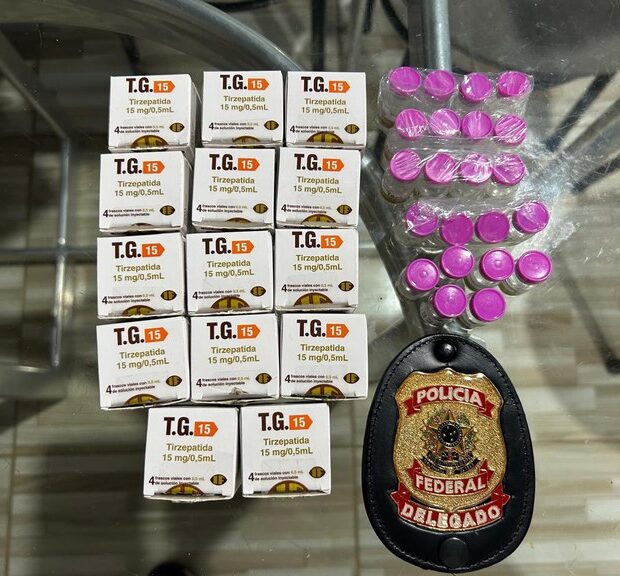 A denúncia contra a estudante foi feita anonimamente. Em seu endereço, agentes da PF acharam pelo menos 14 caixas de Tirzepatida 15 mg/0,5 ml, mais conhecida pelo nome comercial Mounjaro.
