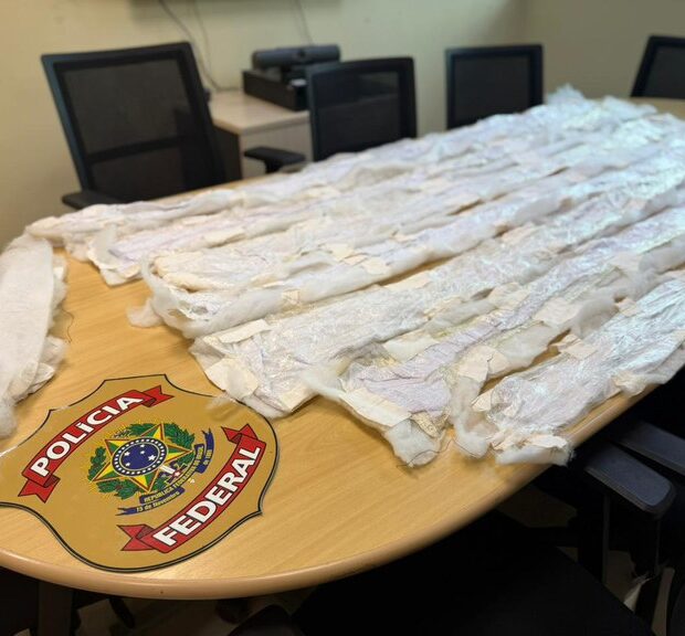 A Polícia Federal continua as investigações para identificar outros envolvidos e descobrir a rota e destino da droga.