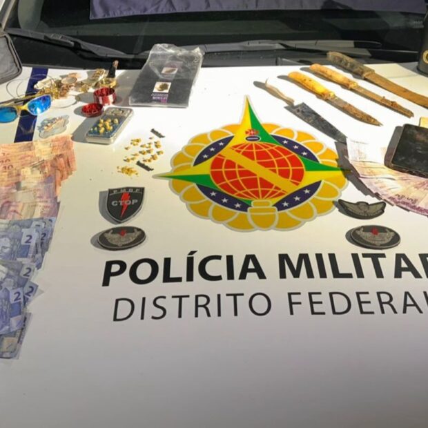 Ao examinar um terreno abandonado usado pelos suspeitos, as equipes encontraram buracos recentes no chão, estratégia para esconder as drogas e dificultar a ação da polícia. No local, foram apreendidas 34 pedras de substância parecida com crack, uma balança de precisão, quatro facas usadas para cortar e esconder a droga, além de R$ 503 em dinheiro.
