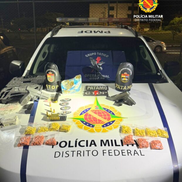 A Polícia Militar do Distrito Federal capturou dois homens na noite de domingo, 18, no Recanto das Emas, durante uma ação policial na quadra 604 da região. Eles foram detidos por tráfico de drogas e posse ilegal de arma de fogo.