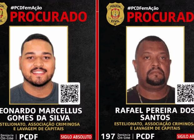 A polícia informou que Rafael Pereira dos Santos e Leonardo Marcellus Gomes da Silva ainda estão foragidos. Quem tiver informações pode ligar para o número 197, da Polícia Civil do Distrito Federal.