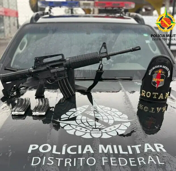 A Polícia Militar do Distrito Federal prendeu um homem por possuir uma arma de fogo de uso restrito em Taguatinga, na tarde desta segunda-feira (15). A ação foi conduzida por equipes do Batalhão de ROTAM por volta das 15h40.