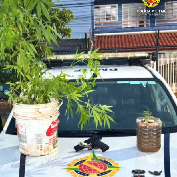 Durante a abordagem, os policiais encontraram duas plantas que pareciam ser da espécie Cannabis sativa, além de um falso revólver. Todo o material foi recolhido e levado para os procedimentos legais.