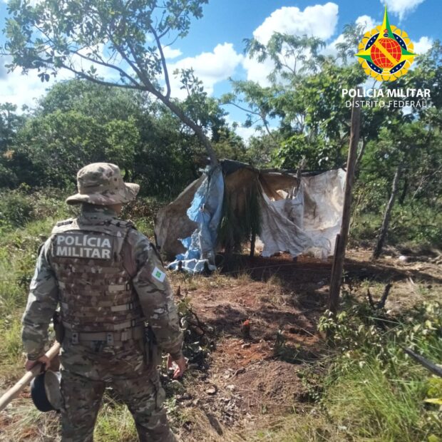 Os policiais observaram sinais recentes de corte de árvores nativas, como barbatimão, sucupira, embaúba e pequizeiros. Também encontraram evidências de uma ocupação organizada no local, o que aumentou o nível de alerta.