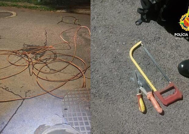 No local, os policiais flagraram dois homens tentando furtar os cabos. Um deles foi preso, com os cabos e ferramentas usadas no crime, confirmando a situação. O outro suspeito fugiu antes da chegada da polícia. O patrulhamento na área foi reforçado, e as buscas continuam para encontrar o segundo envolvido.