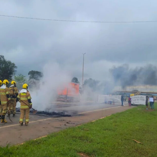 Na manhã desta quarta-feira (4/12), moradores dos Conglomerados Agrourbanos de Brasília (Caub) fizeram um protesto e fecharam uma rua no Gama, entre a DF-480 e a DF-065, usando pneus em chamas para criar uma barreira de fogo.