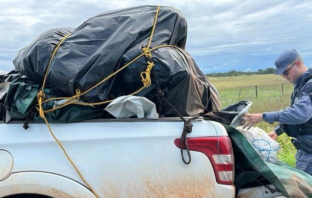 A Polícia Militar fez uma operação após receber uma denúncia anônima, com bloqueio na rodovia BR-156, e parou o carro com as quatro pessoas que transportavam a mercadoria para a área portuária em Santana.