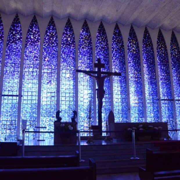 Em entrevista, a professora de artes Catina Garbis, 51 anos, destaca aspectos artísticos do santuário. Ela explica que a luz do sol entrando pelos vitrais azuis preenche o ambiente, dando a sensação de que o concreto desaparece, pois a luz azul predomina o espaço.