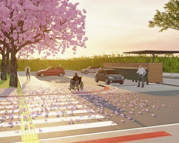 O projeto destaca a sustentabilidade com paisagismo usando plantas nativas do cerrado, ampliando áreas verdes e sombreadas. Pavimentos permeáveis facilitarão o escoamento da água da chuva e ajudarão a reduzir o calor. As áreas de estacionamento serão adaptadas para evitar que carros estacionem de forma irregular, ampliando espaço para pedestres e vegetação.