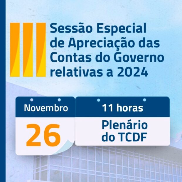 O Tribunal de Contas do Distrito Federal (TCDF) fará uma sessão especial para revisar as contas do governo do Distrito Federal referentes ao ano de 2024. O encontro acontecerá na quarta-feira, 26 de novembro, às 11h, no plenário da corte.