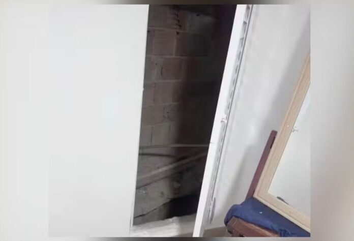 A passagem secreta, localizada no térreo da casa alugada por Dada, permitiu que ele saísse por um buraco aberto após um muro de tijolos e uma seção de encanamento.