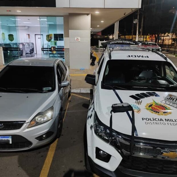 Foram encontradas duas placas adulteradas, nove munições calibre .38 no console do carro, cinco celulares sem origem comprovada e R$ 530 em dinheiro. Na delegacia, um dos celulares foi identificado como furtado.