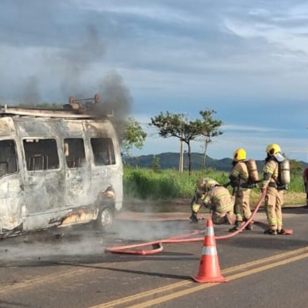 Quando os bombeiros chegaram, encontraram a van com chamas principalmente na parte da frente. Eles cercaram o local para garantir a segurança e usaram mangueiras para apagar o fogo, que foi controlado rapidamente.