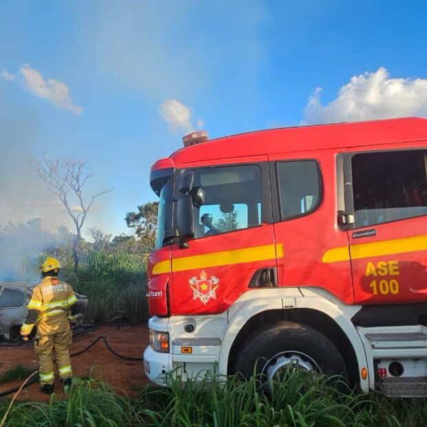O fogo aconteceu no Parque Ecológico do Tororó, perto da rotatória que leva a Unaí (GO), na cidade de São Sebastião. Quando os bombeiros chegaram, o carro já estava em chamas, e a fumaça espessa deixou o ambiente tenso.