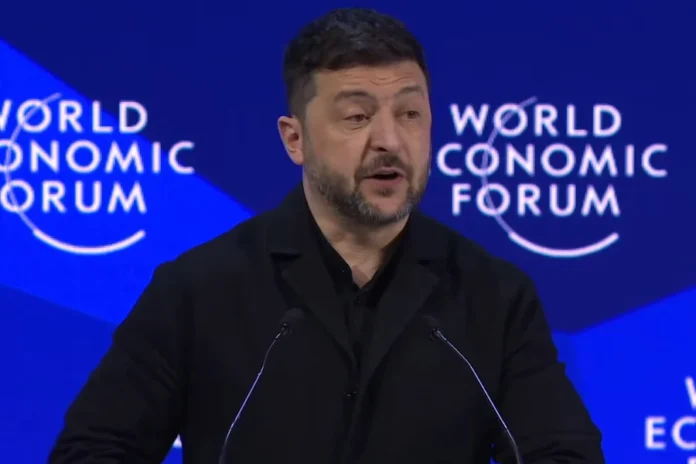 Volodymyr Zelensky discursou durante o Fórum Econômico Mundial em Davos, Suíça, onde usou a detenção do presidente da Venezuela, Nicolás Maduro, para destacar uma crítica ao líder russo, Vladimir Putin.